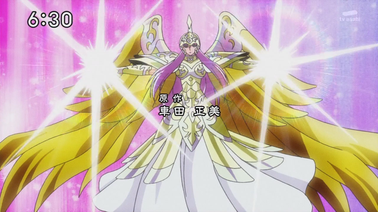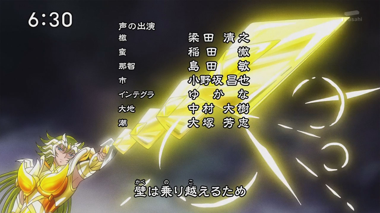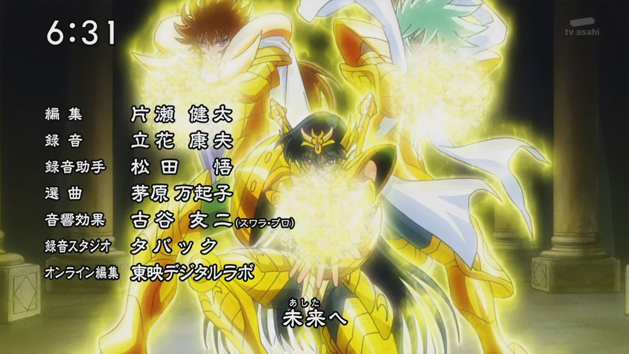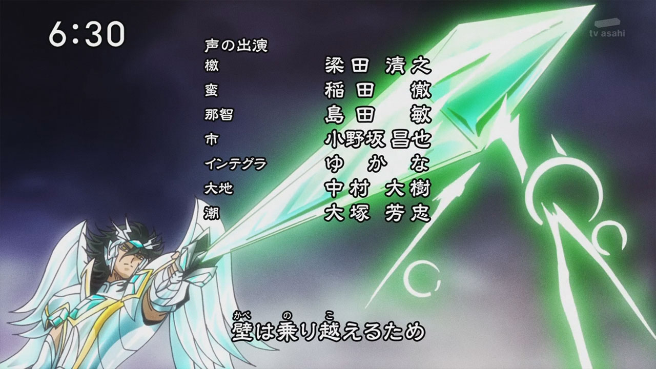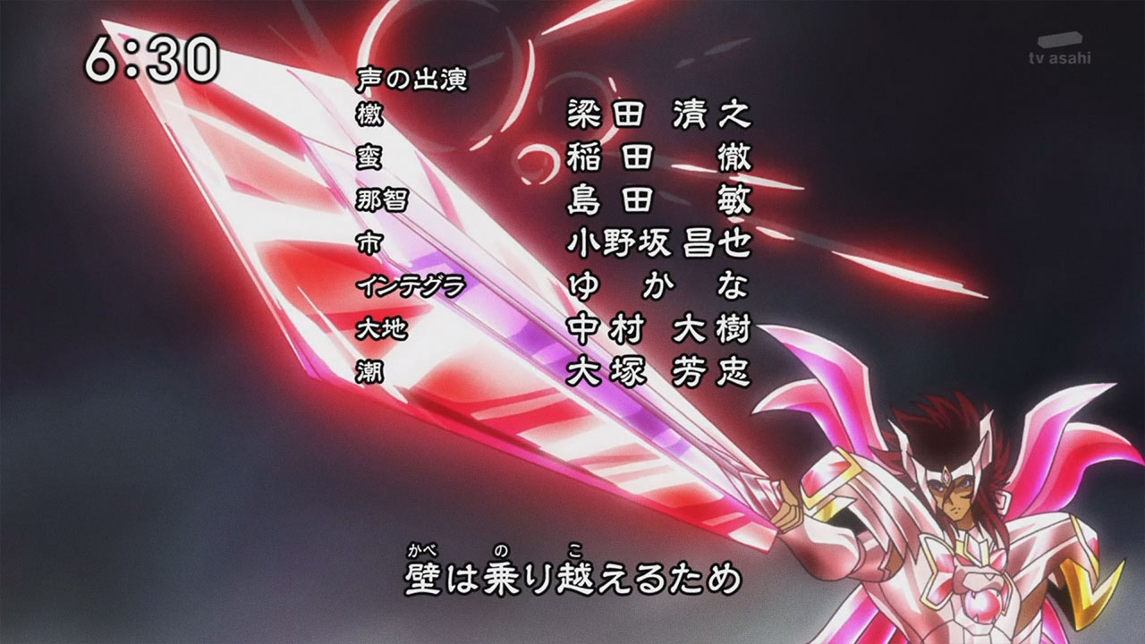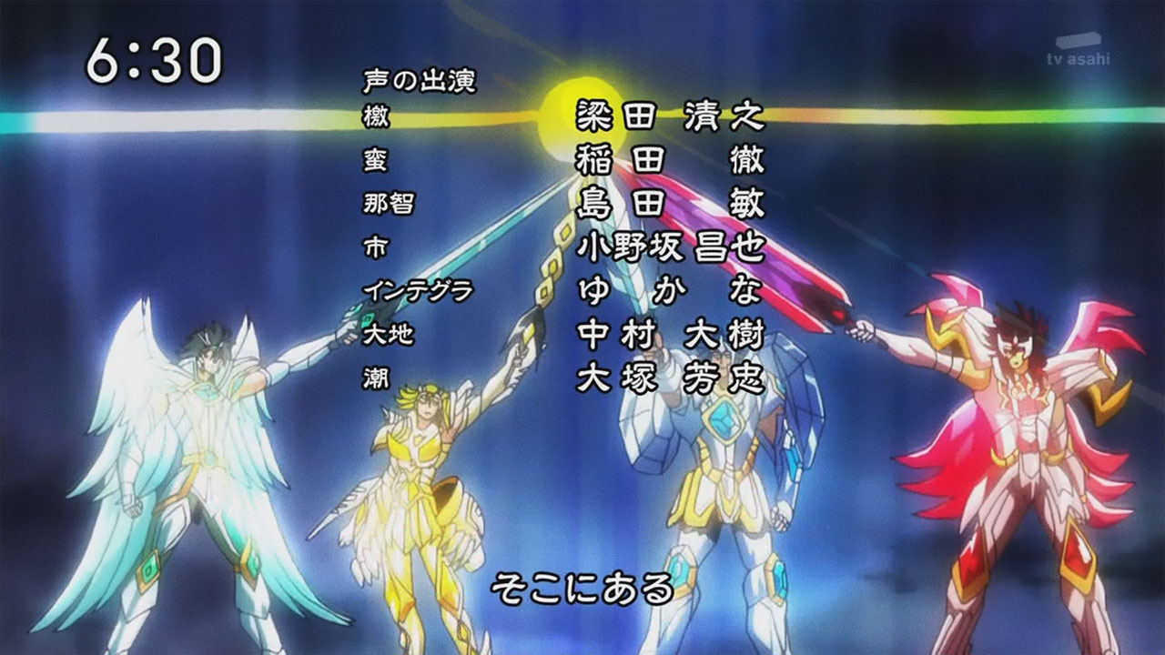 Voltando ao anime, na quarta abertura de Saint Seiya Omega é possível identificar muitos “spoilers” de uma nova temporada com muita ação. Entre as cenas, podemos salientar as armaduras de Athena e Pallas, as 4 armaduras dos principais inimigos, os pallasites de primeira categoria, Titan, Hyperion, Galia e Aegaeon. Destaque também para armadura ômega de Pegasus e a nova armadura de Sagitário. A nova composição do golpe Exclamação de Athena (Athena Exclamation). E para finalizar, o surgimento do vilão final, Saturno, que será o Subaru (que por fim, será um Deus).