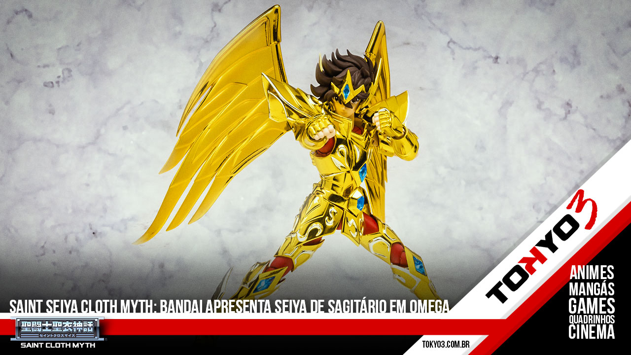 Foi divulgado hoje o mais novo brinquedinho action figure da Bandai, trata-se de Cloth Myth de Seiya de Sagitário na série Saint Seiya Omega. A peça é da armadura de ouro já transformada (através do Ômega Supremo) do protagonista do anime original.