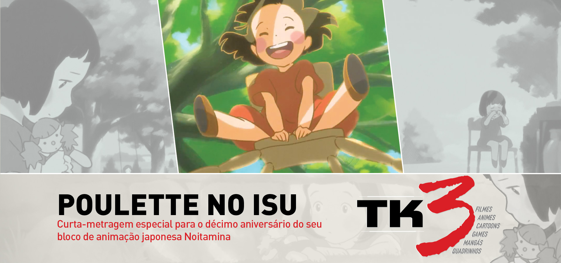 Fuji TV acaba de lançar “Poulette no Isu” (A Cadeira da Poulette), um curta-metragem especial para o décimo aniversário do seu bloco de animação japonesa Noitamina, durante o evento Noitamina Line Up 2014. Hiroyasu Ishida, o animador mais conhecido pelo popular curta “Confissão de Fumiko” dirigiu seu novo curta em parceria com o Studio Colorido. Yõjiro Arai (From Up On Poppy Hill e The Secret World of Arrietty) criou os personagens, e foi responsável pela direção de animação.