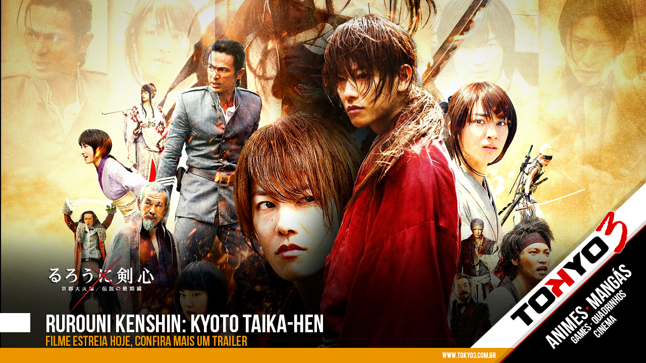 Foi divulgado hoje, pelo canal oficial, mais um trailer de Rurouni Kenshin: Kyoto Taika-hen (Rurouni Kenshin: The Kyoto Fire). Com estreia marcada para hoje, o novo vídeoFoi divulgado hoje, pelo canal oficial, mais um trailer de Rurouni Kenshin: Kyoto Taika-hen (Rurouni Kenshin: The Kyoto Fire). Com estreia marcada para hoje, o novo vídeo trás praticamente as mesmas cenas já vistas em um conpilado de 15 segundos.