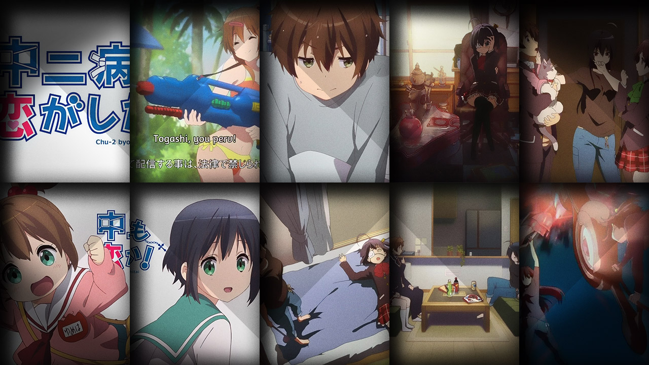O anime conta a história de Yuuta Togashi e Rikka Takanashi, adolescentes que sofrem da síndrome de chuunibyou (veja mais informações no post de estreia, com link acima) e vivem aventuras de fantasias com toda turma a seu redor. O anime é exibido todas as quintas às 0h30 na Tokyo MX, veja a grade de animes do canal e a página especial de Chuunibyou no canal.